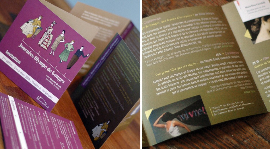 Identité visuelle, visuels, affiches, dépliant et invitation pour les premières Journées Olympe de Gouges, événement culturel relatif au féminisme.