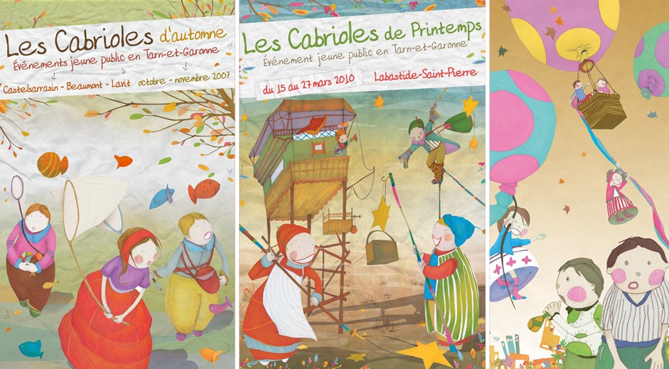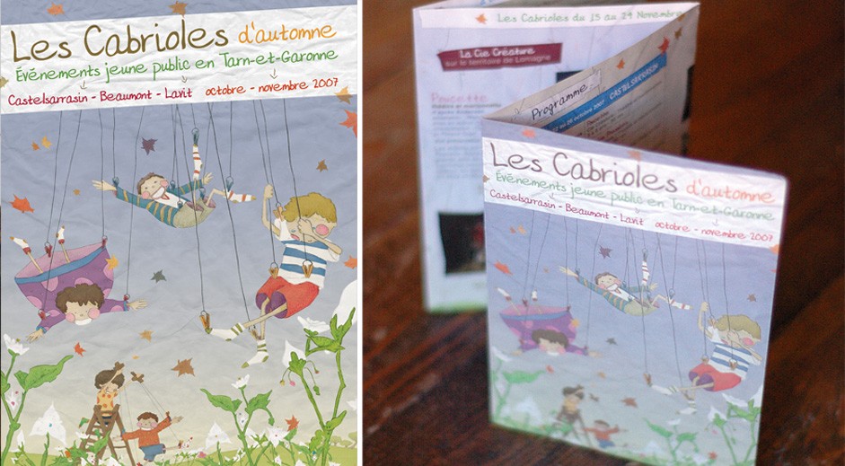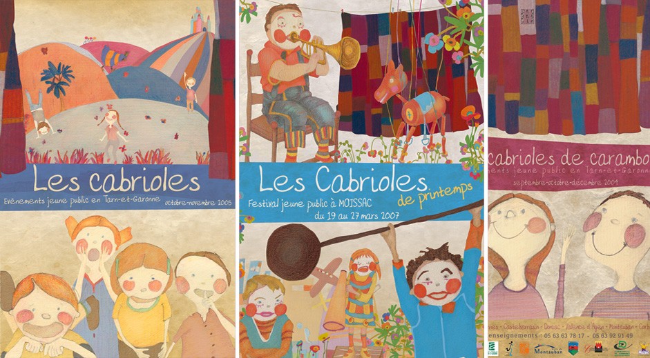 Identité visuelle, illustrations, outils de communication (affiches, programmes, kakémonos…) pour le festival jeune public « Les Cabrioles ».