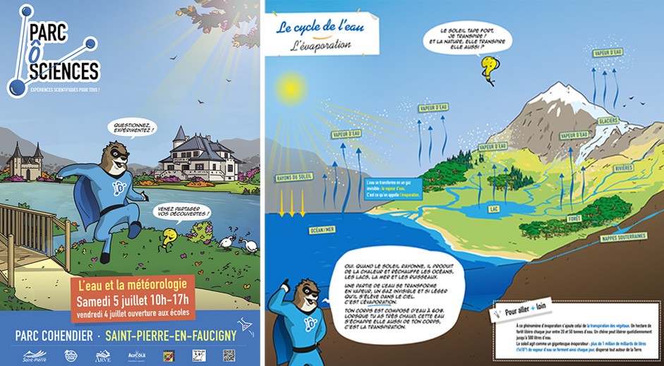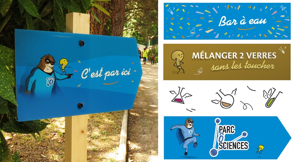 Conception de l’identité visuelle du Parc Ô Science, manifestation festive et pédagogique.