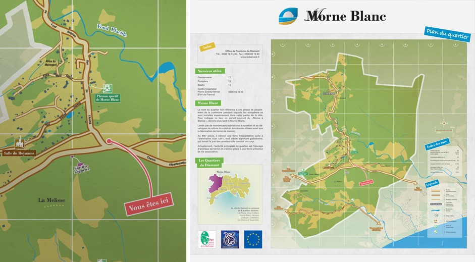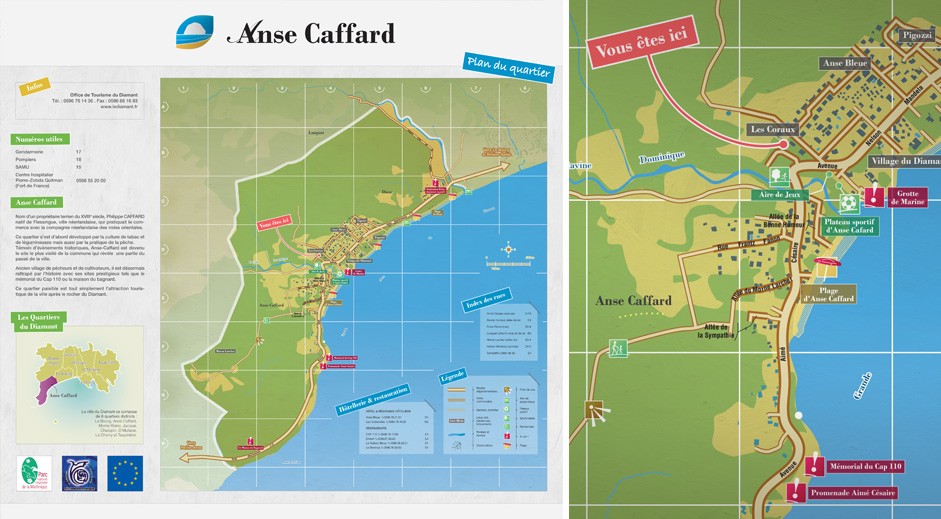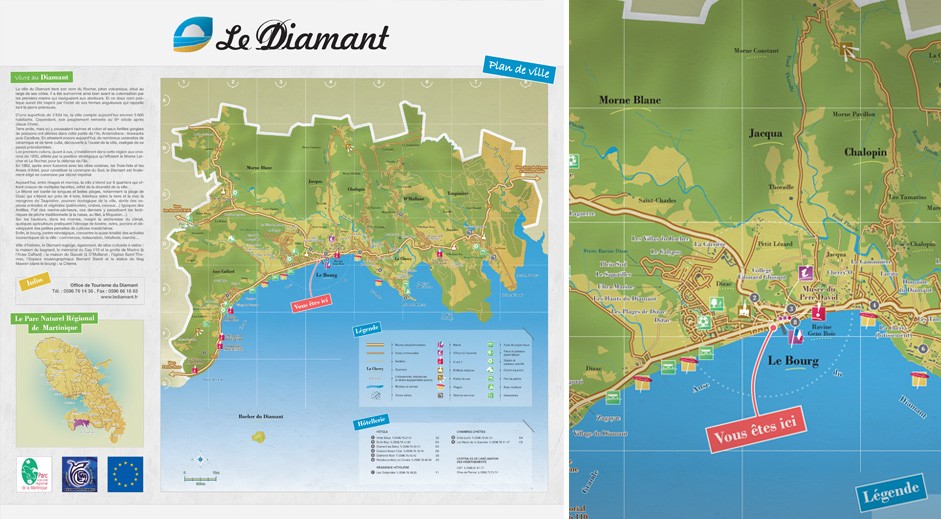 Principes graphiques et cartographies touristiques pour les Relais Information Service du Diamant (9 visuels créés).