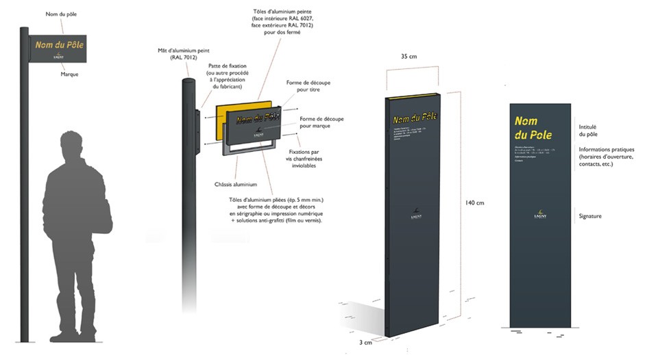 Marque, motif, palettes, principes de structure et de mise-en-page pour Relais Information Service ou RIS, mini-RIS, panneaux d’interprétation, bornes interactives et outils de jalonnement.