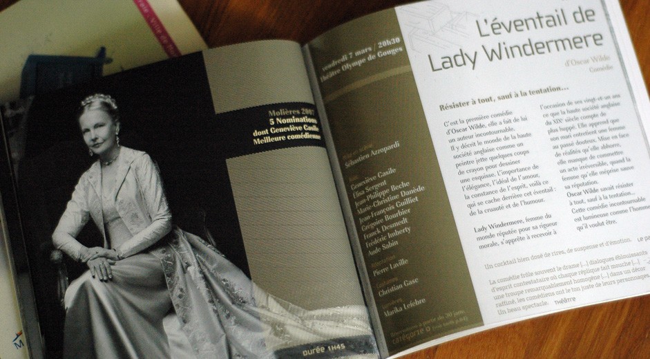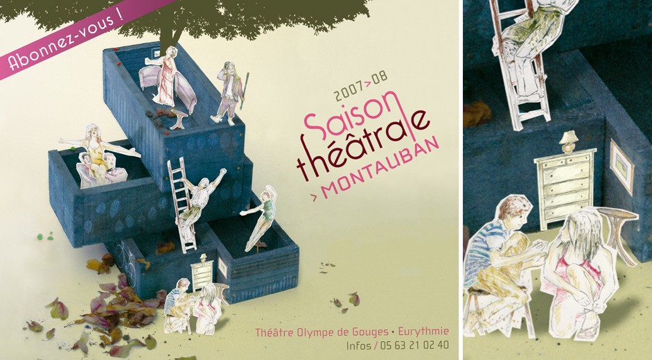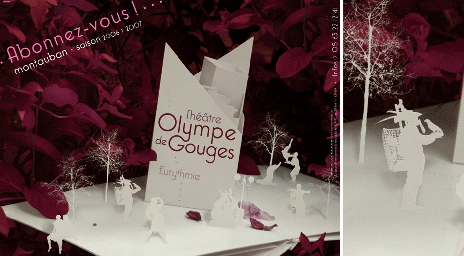 Identité visuelle, affiches, programmes, dépliants, invitations et divers outils de communication pour 2 saisons du théâtre Olympe de Gouges.