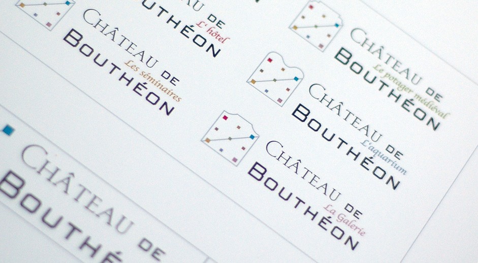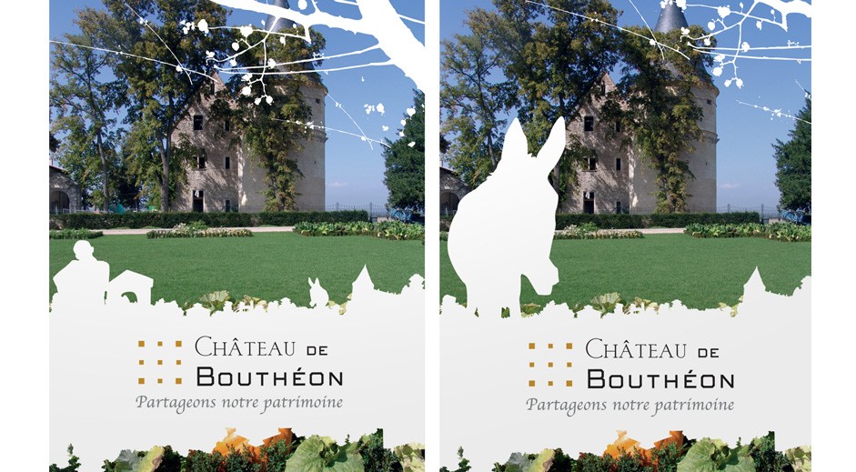 Logotype, slogans, éléments d’identité visuelle et divers supports produit dans le cadre du projet de communication du Château de Bouthéon.