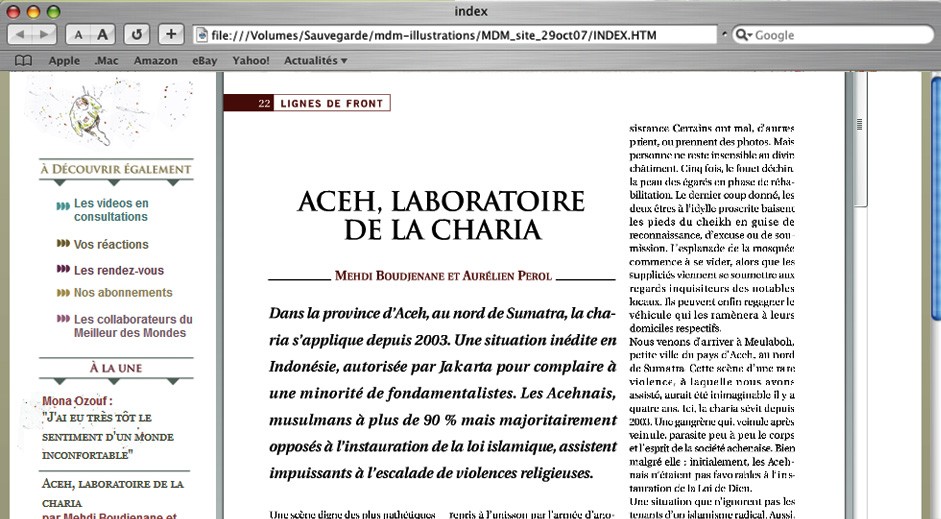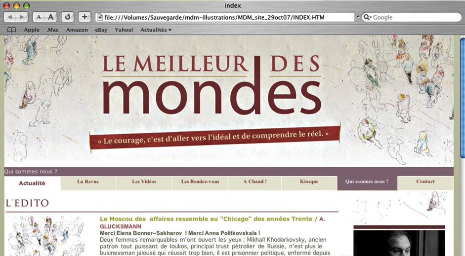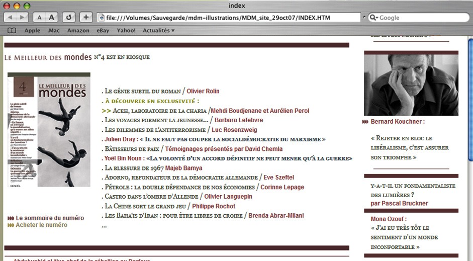 Conception et webdesign du site internet du Meilleur des Mondes, revue d’opinion trimestrielle éditée de 2006 à 2008