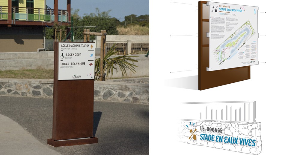 Identité visuelle et design de supports signalétique.